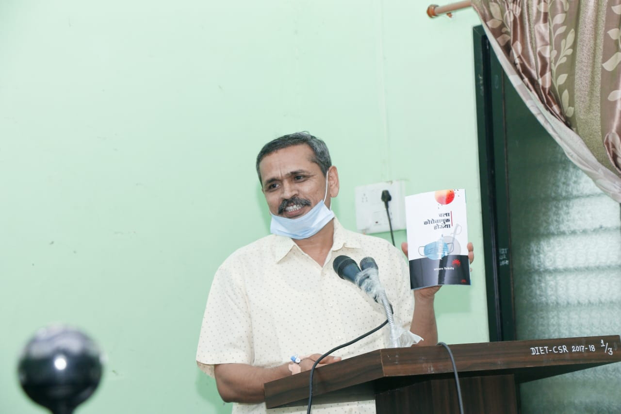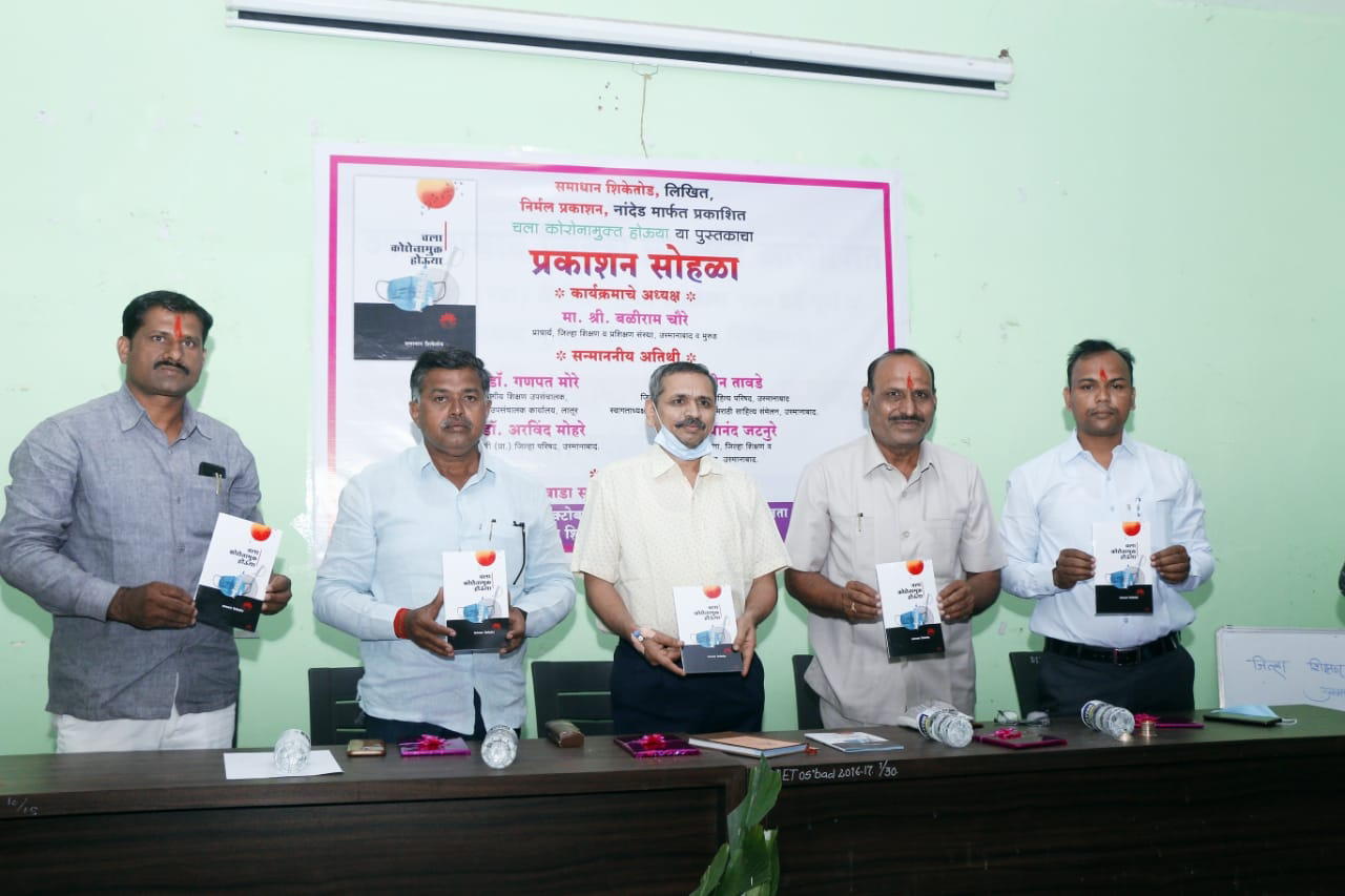 लातूर विभागाचे शिक्षण उपसंचालक मा.डॉ.गणपत मोरे, मराठवाडा साहित्य परिषदेचे जिल्हाध्यक्ष मा.श्री.नितीन तावडे, सेवानिवृत्त वरिष्ठ अधिव्याख्याता मा.श्री.नवनाथ धुमाळ, वरिष्ठ अधिव्याख्याता मा.डॉ.दयानंद जटनुरे या मान्यवरांच्या हस्ते समाधान शिकेतोड लिखित चला कोरोनामुक्त होऊया या पुस्तकाचे प्रकाशन आज जिल्हा शिक्षण व प्रशिक्षण संस्थेतील सभागृहात संपन्न झाले.