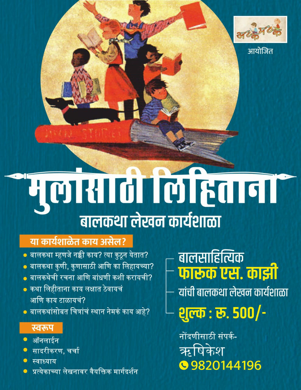 कशी करायची याबाबत बालसाहित्यिक फारूक काझी यांची दिनांक १ ऑक्टोबर ते ४ ऑक्टोबर या कालावधीत ऑनलाईन कथालेखन कार्यशाळा संपन्न झाली.