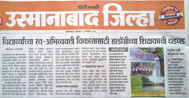 बालदिनानिमित्त मुलांच्या सृजनात्मक लेखनाच्या उपक्रमाची बातमी दैनिक दिव्य मराठी या लोकप्रिय दैनिकात प्रकाशीत केल्याबद्दल दिव्य मराठी वर्तमान पत्राचे मनापासून धन्यवाद.